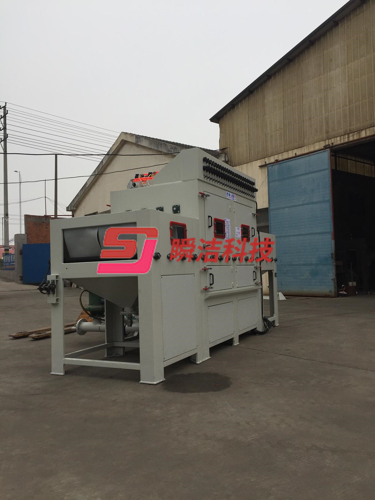 7、 出料口安裝噴淋清洗,循環(huán)再利用,保證工件表面磨料無殘留。